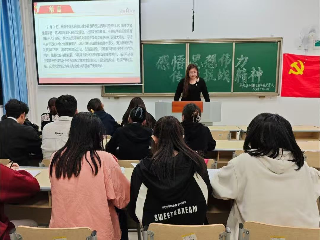 为深入贯彻中央八项规定精神学习教育,激励广大党员铭记历史,在强国建设、民族复兴的征程中担当作为,从抗战历史中汲取奋进力量,将思想伟力转化为奋进动力,新能源与材料工程学院党总支于2025年9月19日精心组织开展了“感悟思想伟力,传承抗战精神”主题党日活动。此次活动,宛如一座灯塔,指引党员们的信仰航向,鼓舞着众人在新征程的风雨里铭记历史、勇担使命。